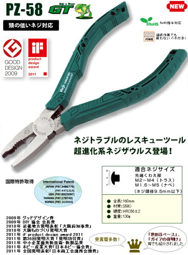 ネジザウルスGT PZ-58 ウルスマスク キャップ プライヤー エンジニア ペンチ TV ネジ 外せない